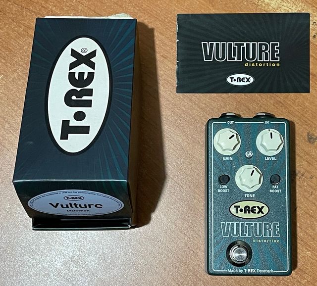 Il T-REX Vulture Distortion è un distorsore di qualità versatile per chitarra progettato per essere utilizzato sia su un canale pulito di un amplificatore che come overdrive grazie ai controlli di Gain, Tone e Level e ai potenziometri Low Boost e Fat boost che agiscono sulle frequenze basse e medie.