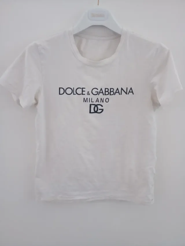 T-shirt bianca per bambino firmata Dolce & Gabbana. - Logo Dolce & Gabbana Milano DG sul davanti.