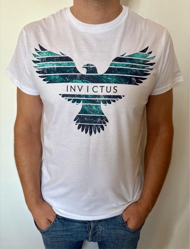 T-shirt Invictus aquamarina e bianca