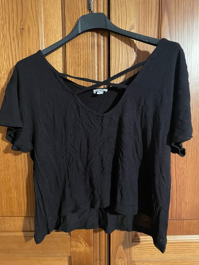 T-shirt nera con incrocio sul davanti