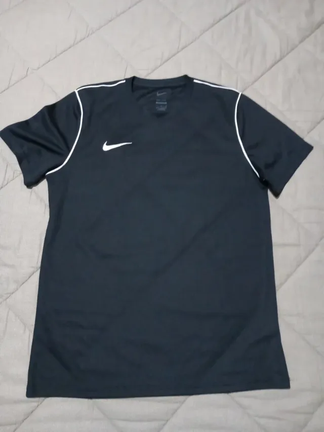 Maglietta sportiva Nike di colore nero. Nelle foto ci sono le misure - Logo Nike bianco sul petto. - Dettagli bianchi sul collo e sulle maniche.