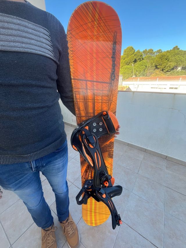 Dettagli del prodottoTavola da snowboard con un design accattivante in toni arancioni e linee nere. Include fissazioni. Design grafico con struttura lineare. Altezza 1,75 m. Taglia scarponi: 44. È possibile acquistare anche separatamente (prezzo variabile). La descrizione è stata tradotta automaticamente.