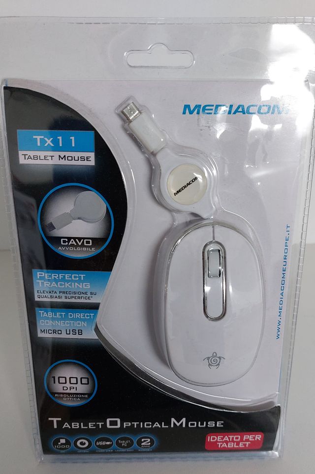 Tablet Mouse con Cavo Avvolgibile Colore Bianco