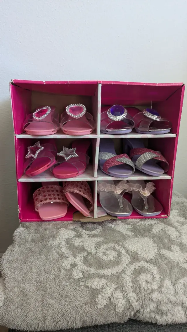 Dettagli del prodottoSet di scarpe/tacchi da principessa per immergersi in un mondo incantato circondato da principi e principesse.