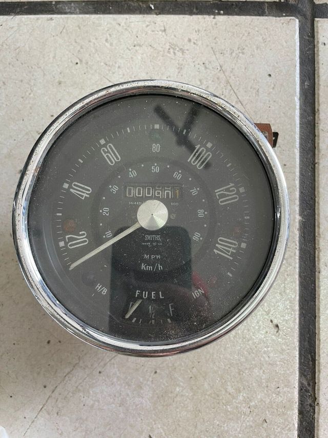 Dettagli del prodottotachimetro contachilometri SMITHS 140 km/h per auto MINI con soli 90km, come in foto venduto con formula visto e piaciuto in quanto fermo da anni.