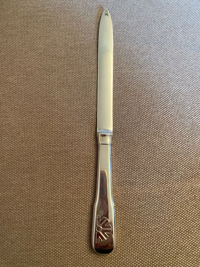 Tagliacarte coltellino in lega argentata marchio OLRI. Lunghezza cm 19. perfetto anche per un regalo