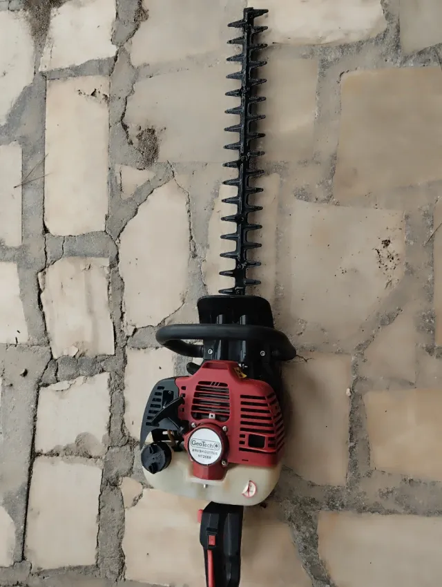Dettagli del prodottoTagliasiepi a scoppio con lama lunga per potatura.