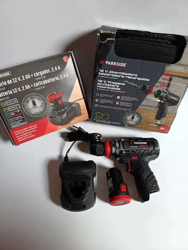 Dettagli del prodottoIn vendita trapano avvitatore Parkside da 12V, modello PLGK 12 A2, in perfetto stato e con tutti gli accessori. NUOVO - Include trapano avvitatore, batteria da 12V 2Ah, caricabatterie rapido da 2.4A, borsa di trasporto. NON TRATTABILE La descrizione è stata tradotta automaticamente.