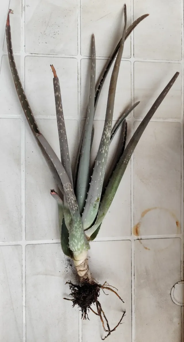 Talea di aloe vera. Altezza 45 cm circa. Da interrare, con radici. Disponibilità di altre talee, anche di altre grandezze. Altre foto disponibili.