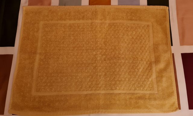Tappetino bagno in spugna Caleffi giallo (tendente al senape), gommini antiscivolo, misure in foto, ottime condizioni.