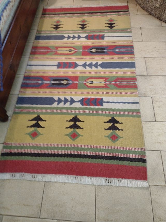 Tappeto arredo ideale per qualsiasi ambiente Colori e disegno particolari Misure 183×93 Finitura laterale con frange colore corda