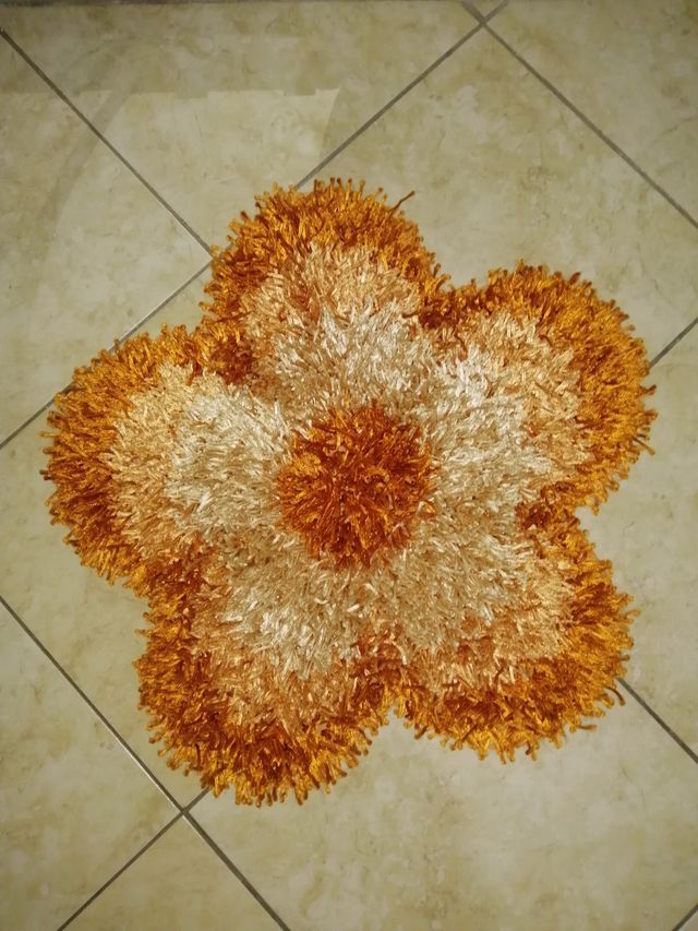 Tappeto a forma di fiore in ottime condizioni. Colori:arancione, panna, beige.