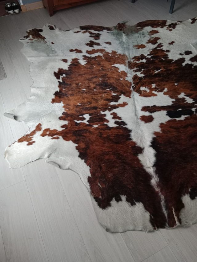 Dettagli del prodottoTappeto bianco e marrone in vera pelle di bovino Misure del prodotto