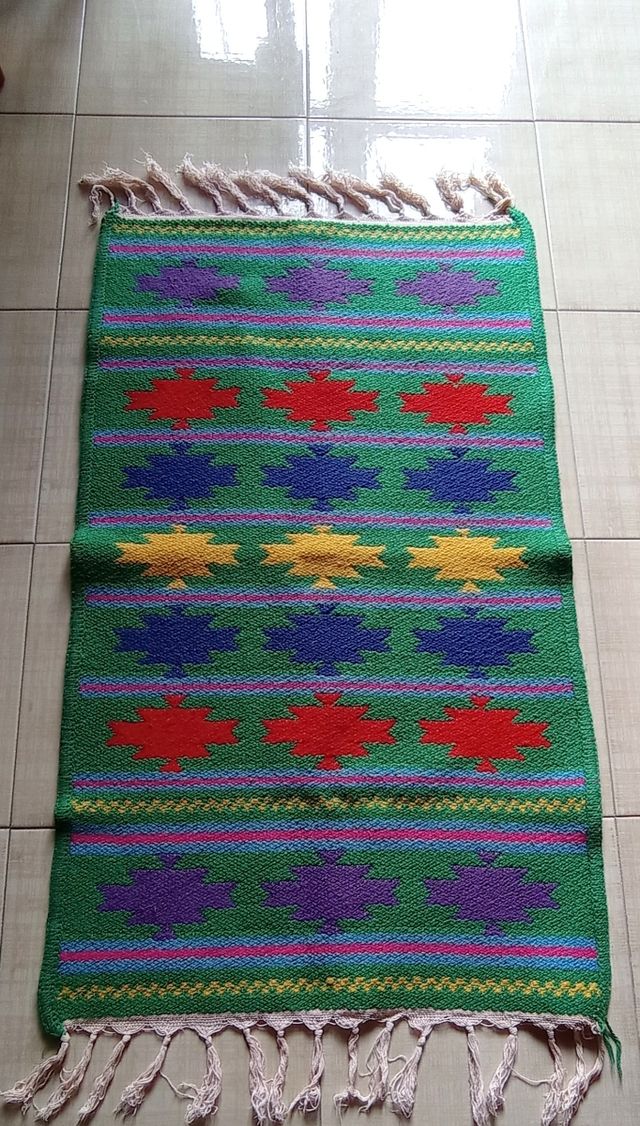 Tappeto Kilim double face in poliestere. Usato ma in perfette condizioni. Non ha pallini o pelucchi. Misure 102 X 60 cm.