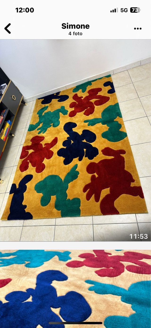 Tappeto in lana con un allegro disegno.origenale topolino Disney - Motivo con figure colorate su fondo giallo. - Materiale: lana.
