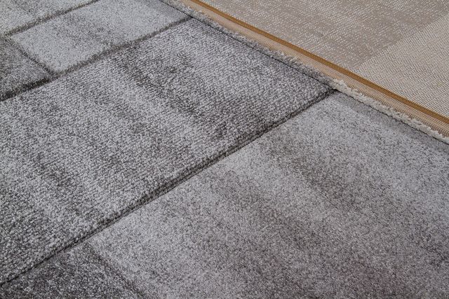 Tappeto moderno con un design geometrico che ricorda i mattoni. Le tonalità grigie si adattano a diversi stili di arredamento.