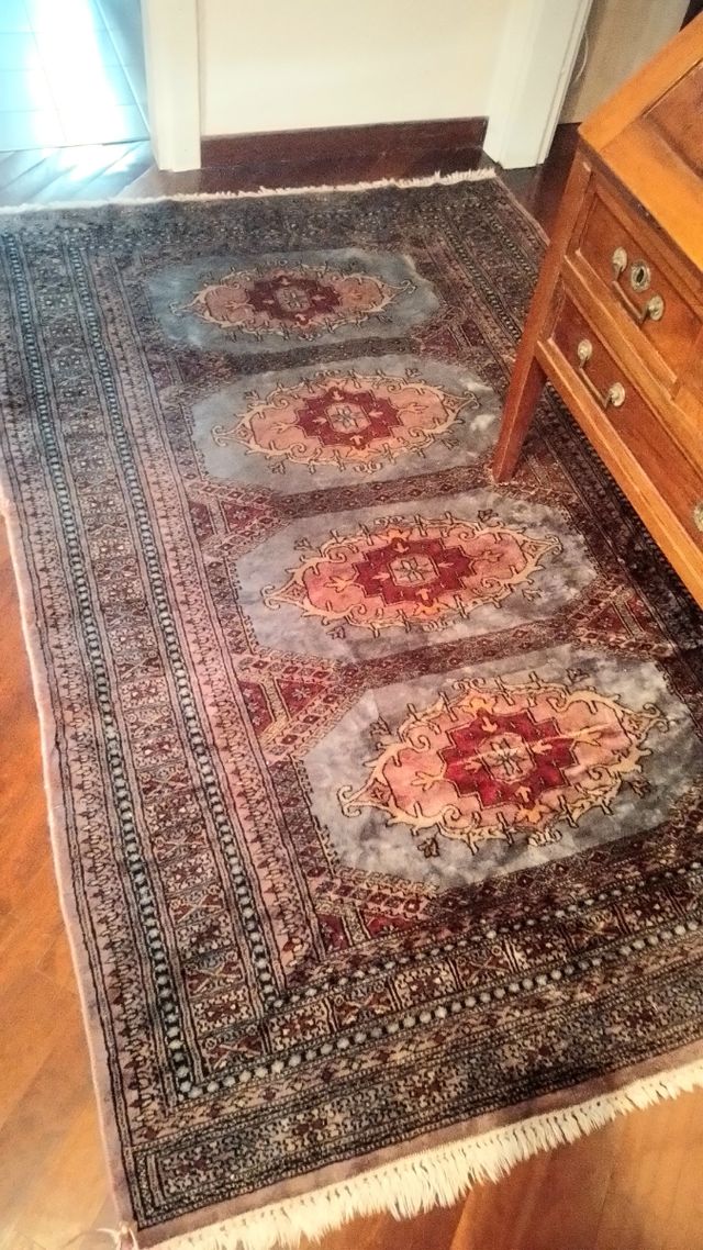 Vintage anni 80 , ancora colori brillanti , guardate il retro com'è fine nella manifattura . Provenienza Pakistan . 200x150 circa