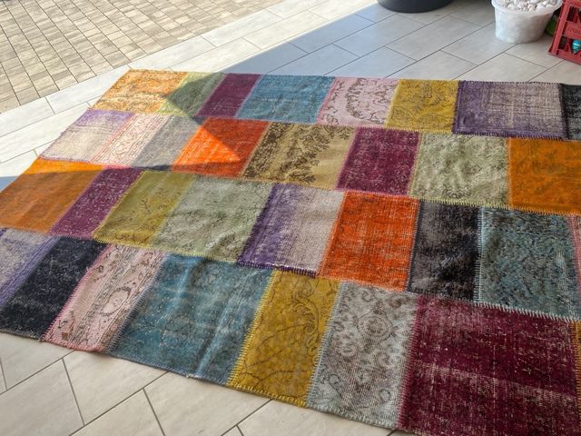 Dettagli del prodottoUsato poco per cambio casa, dimensioni 300x200 cm spessore 1 cm circa, in lana, cucito a mano, origine Turchia (Patchwork originale). Presenta un punto in cui è scucito ma è facilmente riparabile Misure del prodotto
