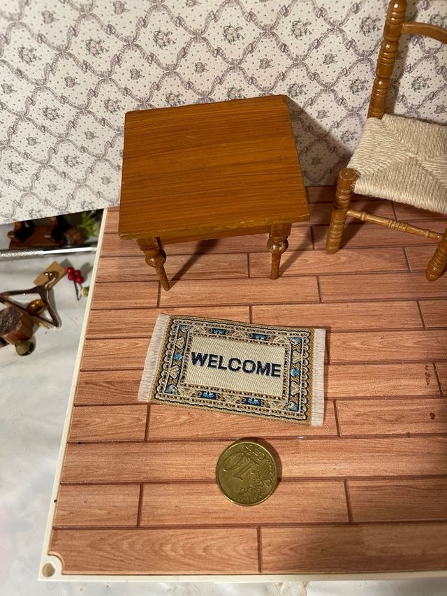 Dettagli del prodottoMini tappeto con la scritta WELCOME, perfetto per arricchire la tua casa delle bambole.