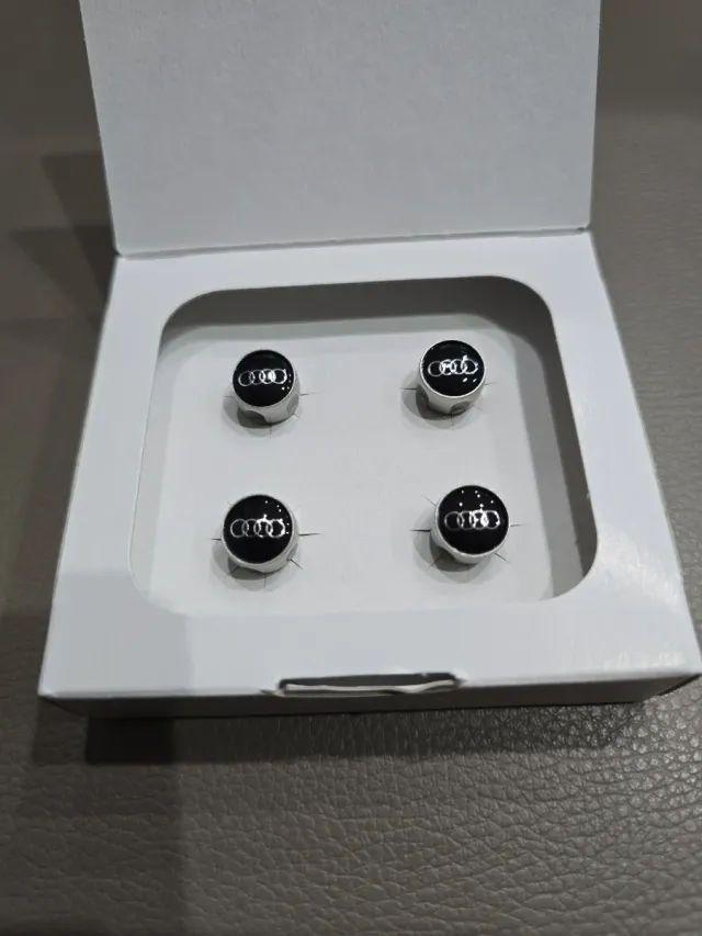 Set di 4 tappi per valvole con logo Audi. - Design elegante con logo Audi nero su sfondo argentato. - Materiale resistente per una maggiore durata.