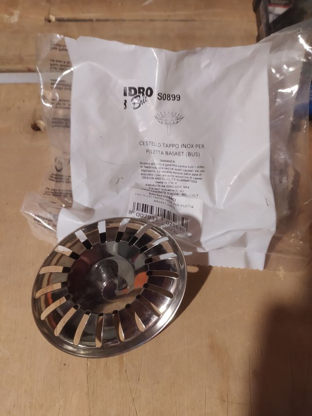 Tappo lavandino cucina in acciaio inox, mai usato. Diametro cm 8. Idrobric