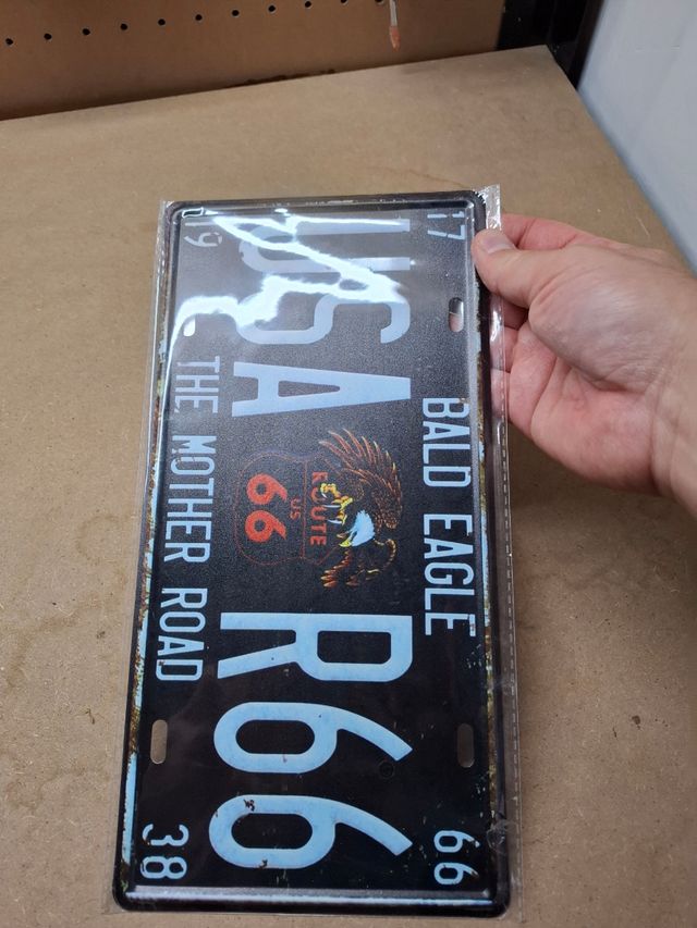 Dettagli del prodottoCedo praticamente nuova e mai affissa a parete targa decorativa in metallo vintage con design Route 66 e aquila americana.la targa è ancora nella sua busta da confezione. Non perditempo.