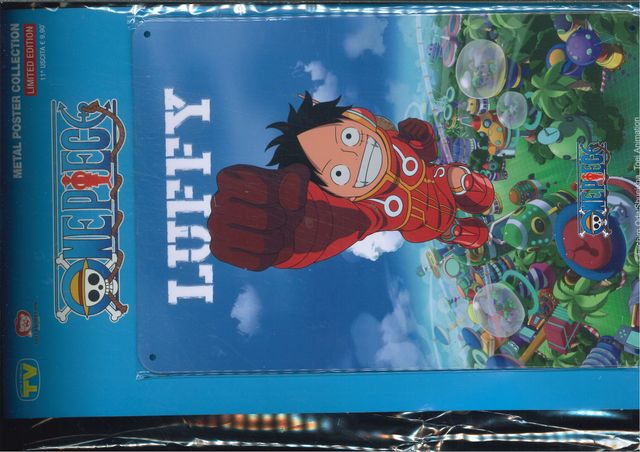 Dettagli del prodottoTarga in metallo da collezione One Piece con protagonista Luffy.