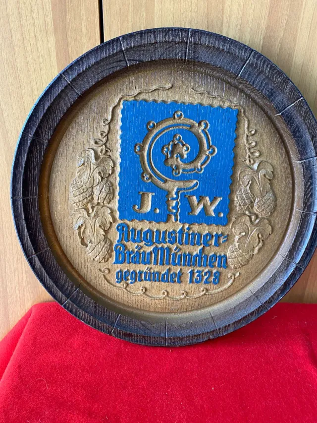 Dettagli del prodottoTarghetta in vetroresina decorativa con logo del birrificio Augustiner Bräu München. Diametro 40cm