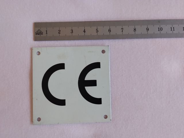 Targhetta CE Comunità Europea in alluminio , ottime condizioni , con fori per il fissaggio .