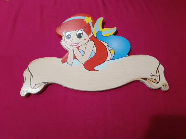 Dettagli del prodottoDeliziosa targhetta in legno a forma di sirenetta, perfetta per personalizzare camerette