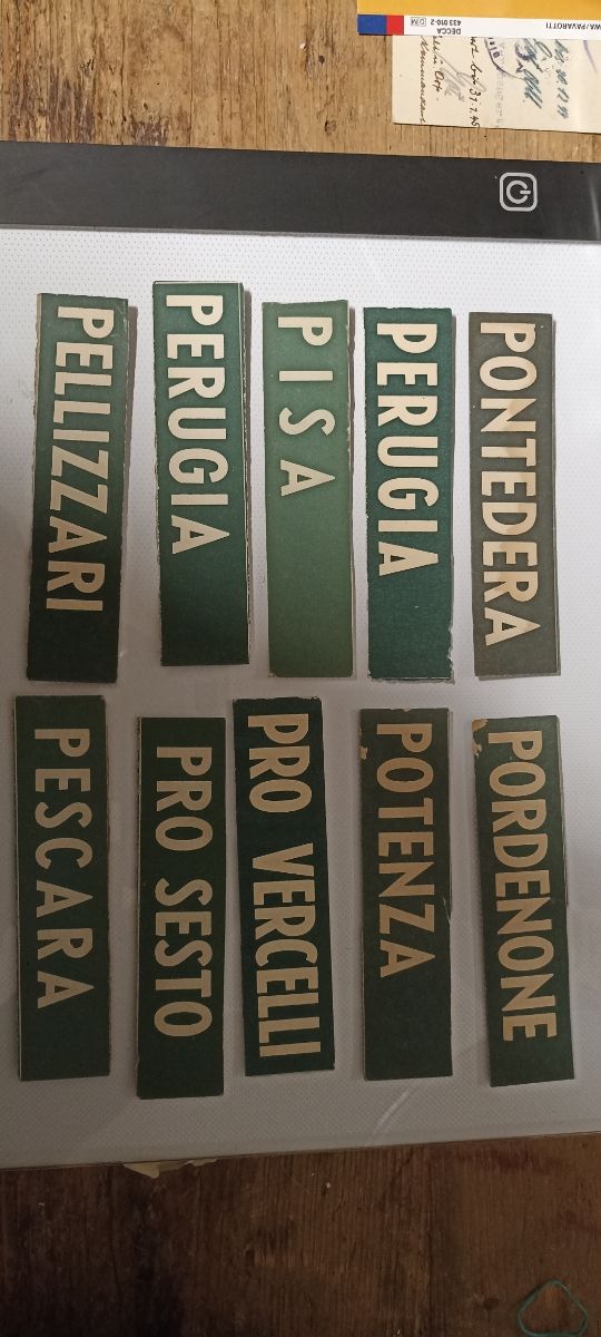 Dettagli del prodottotarghette in cartoncino di squadre calcio anni 50. misure 12,5*3 cm . venivano inserite in un tabellone del totip . prezzo cadauno . disponibili una 50ina Misure del prodotto