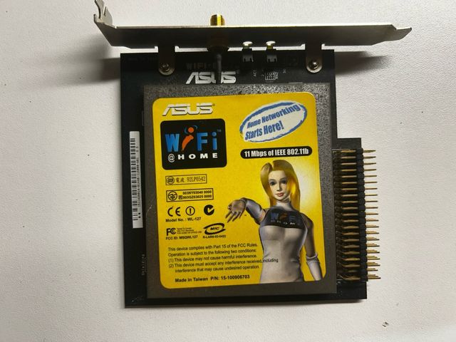 Dettagli del prodottoScheda WiFi ASUS WiFi@Home WL-127, formato PCI, standard 802.11b (11 Mbps). Hardware originale dei primi anni 2000, ideale per PC retrò, Windows 98 / XP, collezionisti o progetti vintage. ⚠️ Stato: non ho attrezzatura compatibile per testarla, quindi viene venduta come non testata. Visivamente in buone condizioni. Si vende senza accessori (senza antenna né CD). Consegna a mano 12€ o spedizione 15€ #ASUS #WiFiRetro #PCI #HardwareRetro #VintagePC #Windows98 #WindowsXP #Coleccionismo #InformaticaVintage La descrizione è stata tradotta automaticamente.