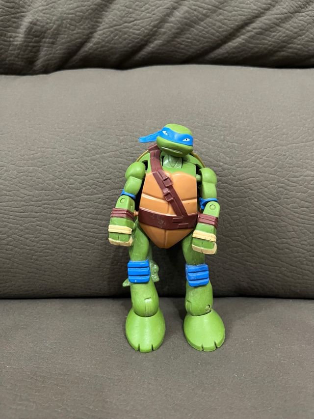 Action figure delle Tartarughe Ninja. - Personaggio verde con bandana blu. - Guscio marrone sul petto. - Bracciali e ginocchiere blu.