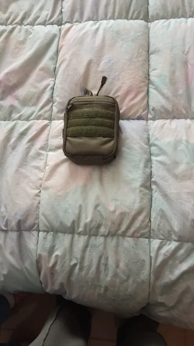 Tasca tattica di colore verde oliva. - Materiale resistente. - Design compatto. - Ottimo da attaccare ai propri zaini da montagna