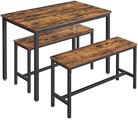 Tavolino da Pranzo con 2 Panche, Set di 3 Pezzi, T