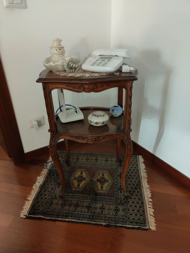 Dettagli del prodottoTavolino francese della seconda metà del 1800, stile provenzale, in legno di noce. Piano superiore e inferiore quadrato che riunisce le 4 gambe con intagli; termina con piedini a riccioli.