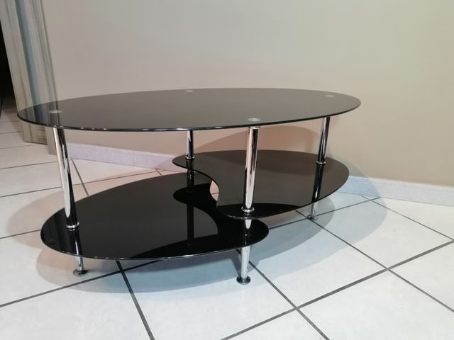 Tavolino ovale vetro nero 3 livelli 95x50x45