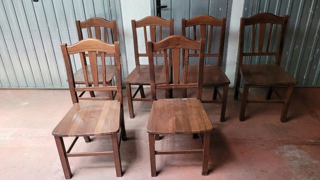 tavolo allungabile da 6 a 8 posti con 6 sedie, tutto in legno massello. il piano del tavolo e le sedie presentano qualche segno non importante