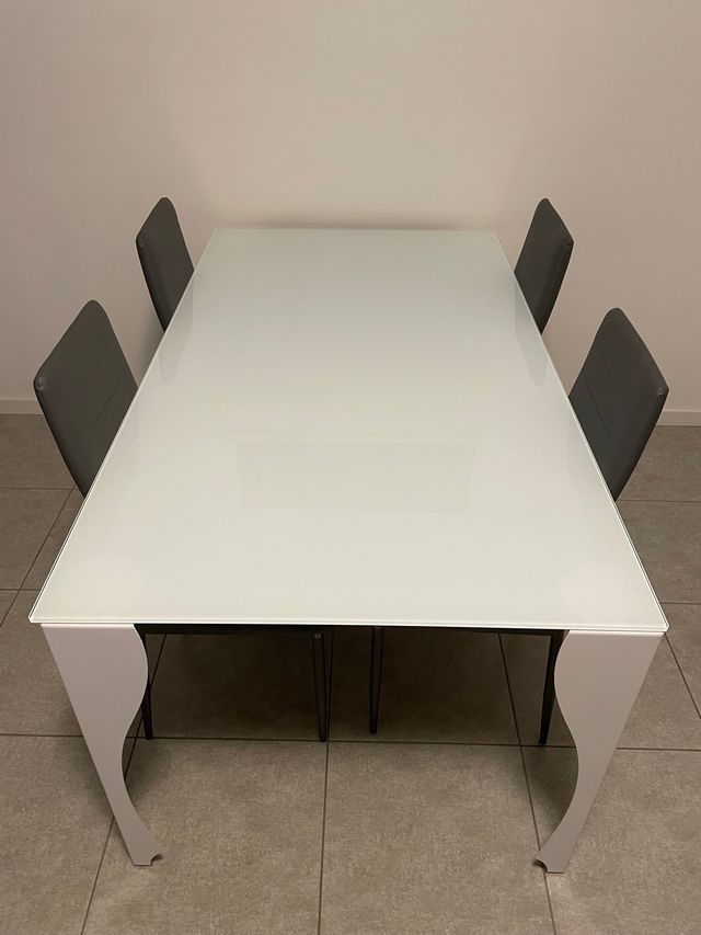 Salve, vendo tavolo in cristallo comprensivo di sedie. Piccoli segni si normale usura. Per altre foto o informazioni scrivetemi pure