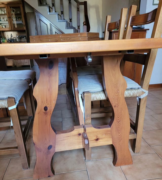 Tavolo in legno 60x180 con 4 sedie. Ci sono anche 2 prolunghe da 30 cm cadauna.