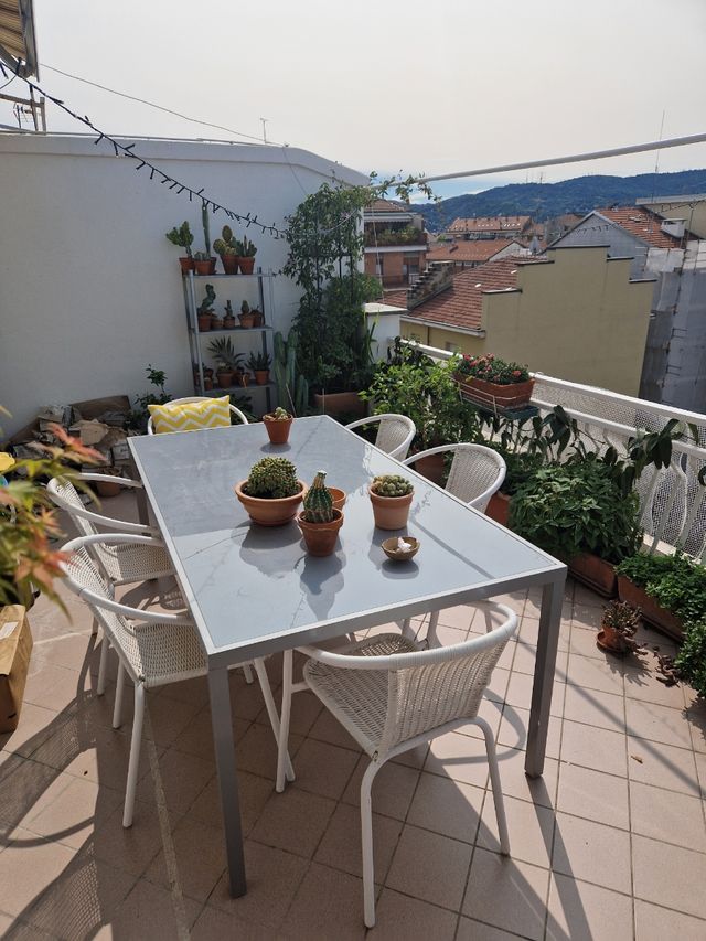 Dettagli del prodottoVendo tavolo da giardino/terrazzo, grigio in metallo con base in vetro temperato (misure 180x100