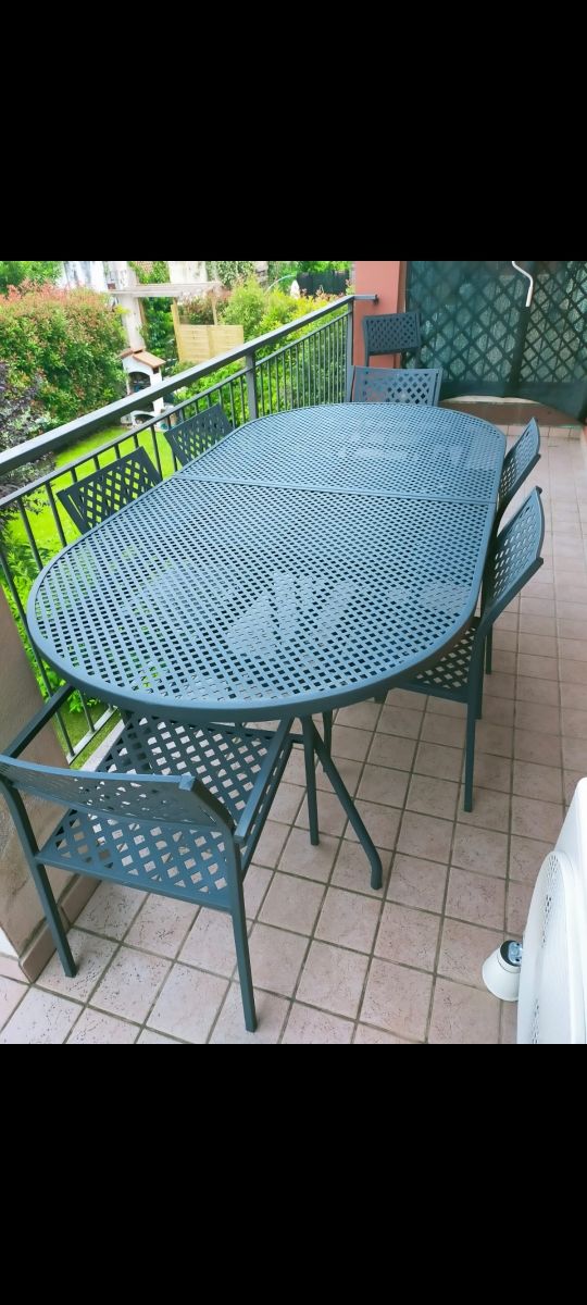 Tavolo in ferro battuto allungabile da 220 fino a 300, largo 110 8 sedie si cui 2 con bracciolo