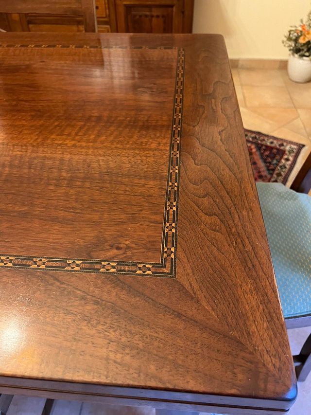 Tavolo intarsiato della metà del 900 con 6 sedie in paglia di Vienna in ottimo stato Tavolo 85x160 allungabile a 205 e 250