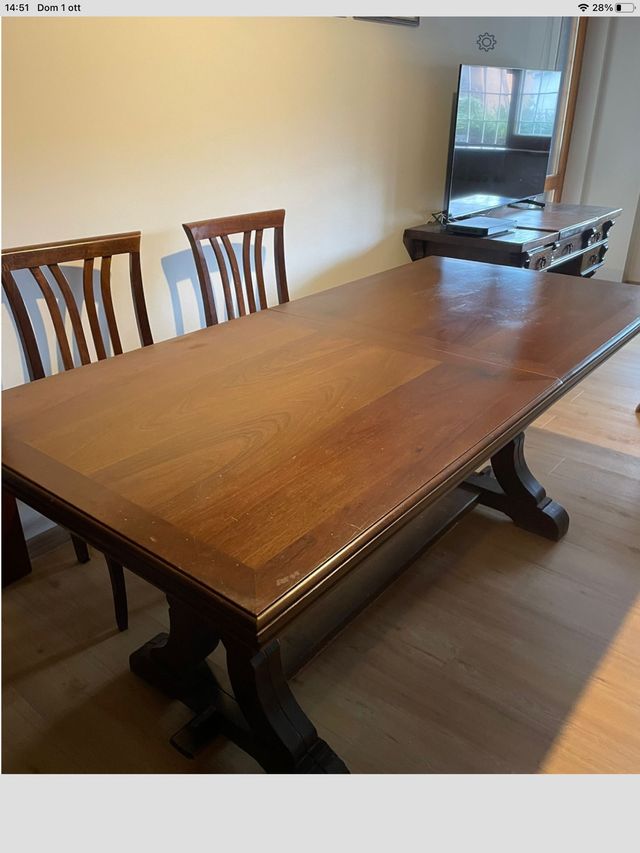 Dettagli del prodottoTavolo 1.80x85 allungabile fino a 3.60. Color noce buone condizioni Misure del prodotto