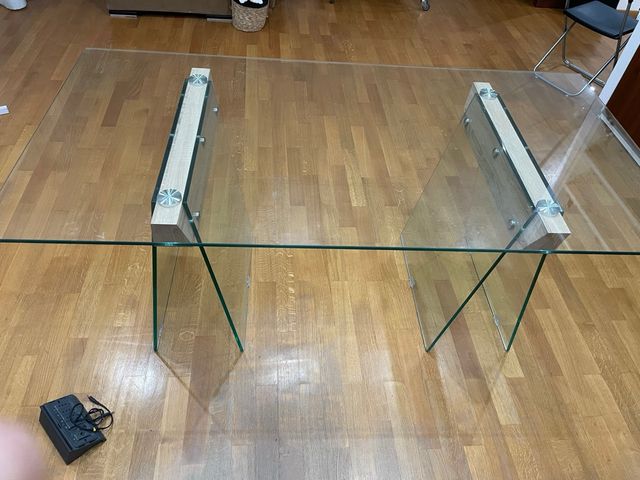 Tavolo scrivania in vetro e legno
