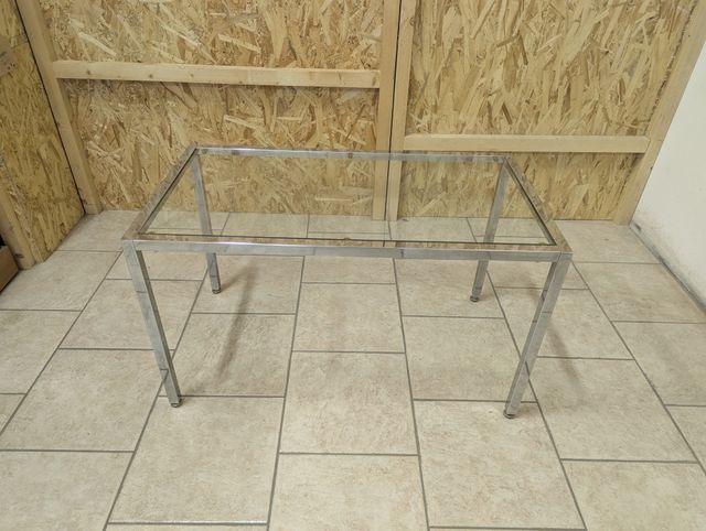 Tavolo tavolino nuovo in metallo cromato e vetro