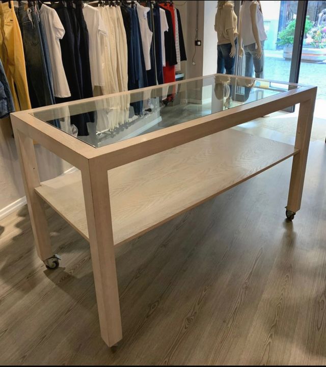 Tavolo vetro-legno arredamento/negozio