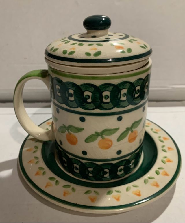 Bellissima Tazza per tisane in ceramica dipinta a mano. Ideale per mantenere calde le tisane grazie al coperchio di cui è dotata la tazza.
