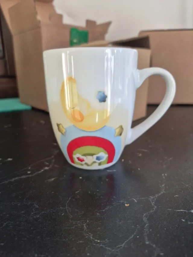 Dettagli del prodottoTazza in ceramica con un simpatico disegno di una luna addormentata e stelle. Perfetta per iniziare la giornata con un sorriso.