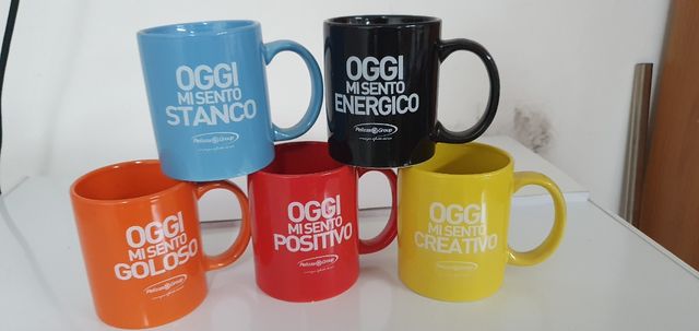 Tazze colorate con scritta simpatica. Sono 5 e mai usate.